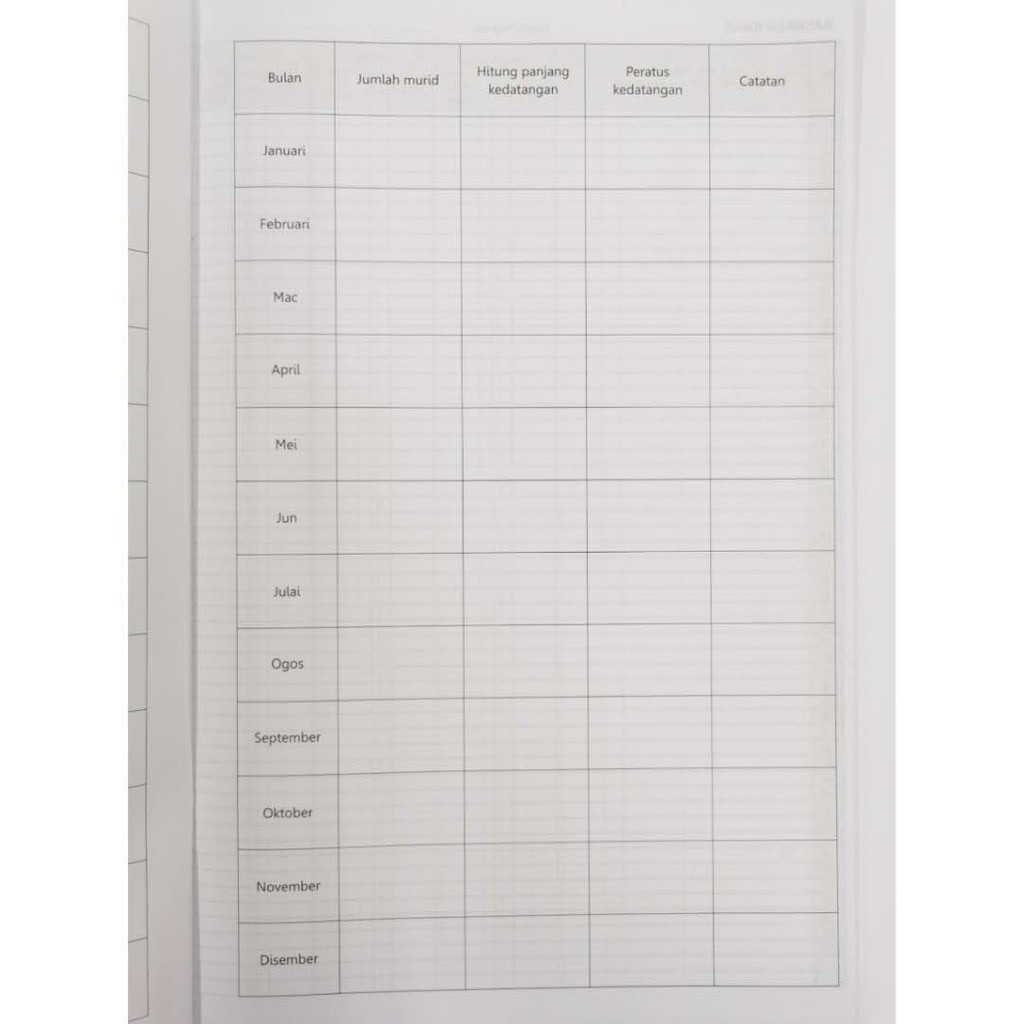 Contoh borang rekod kehadiran pekerja.